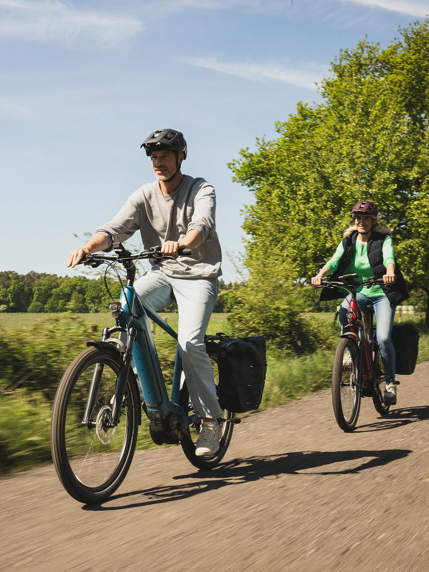 Sehr bequem, sicherer Halt auf losem Untergrund, ideal für Offroad oder viel Gepäck – etwas mehr Rollwiderstand.